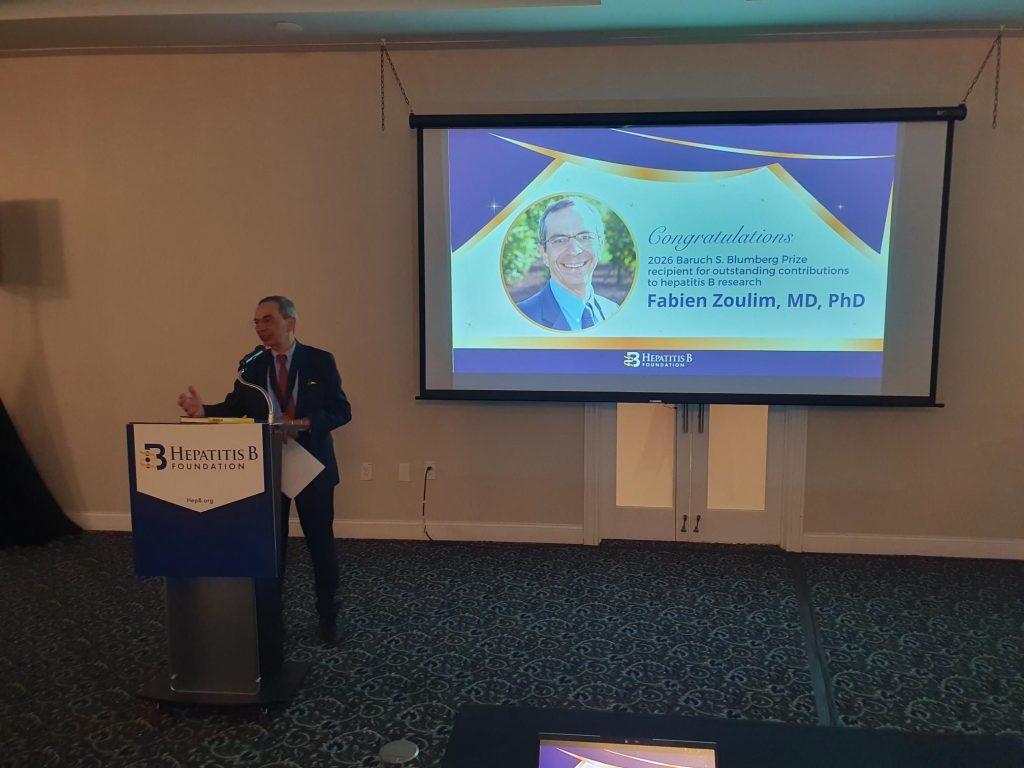 Le vendredi 10 avril 2026, le Professeur Fabien Zoulim, directeur de notre IHU Lyon Hepatology Institute, a reçu le « Baruch S. Blumberg Prize » 2026 pour ses contributions exceptionnelles à l’avancement des connaissances scientifiques et médicales sur les hépatites B et D.